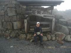 | 7:45 頂上で記念撮影。 | 9:27 八丁。 | 9:50 石鎚神社中宮・成就社 | 9:50 石鎚神社中宮・成就社 |