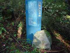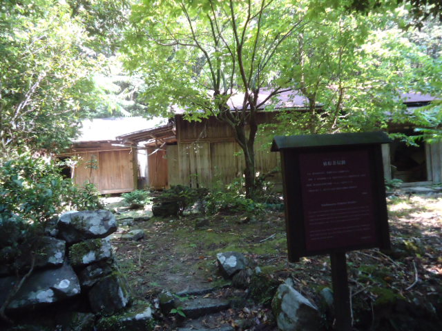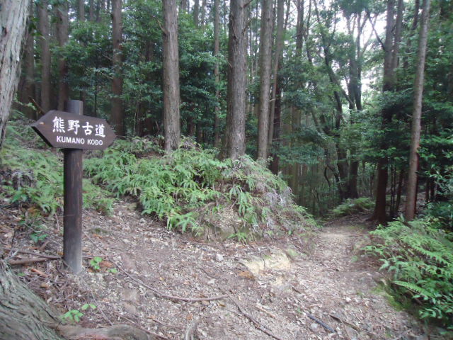 | 熊野杉の木立の中に続く熊野古道。 | 8:43 悪四郎邸跡。 十丈の悪四郎は伝説上の人物で、力が強く頓智に長けていたと言われる。悪四郎の「悪」は悪者のことではなく勇猛で強いという意味である。 | 8:49 十丈(重點)王子。 現在は十丈(じゅうじょう)王子と呼ばれているが、鎌倉時代の日記には重點(じゅうてん)王子と書かれています。 | 8:49 十丈王子。 木立の中の石畳。よく整備されている。 |