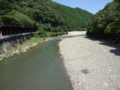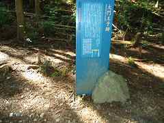 | 12:07 念仏渕 後鳥羽上皇はいつも頭痛に悩まされていましたが、熊野に参ることで頭痛が治ると信じ、毎年熊野詣をしていましたが、ある時、熊野権現が夢枕に現れ、「お前の前世のドクロが川の中に沈み、柳の根がドクロに入り、水が流れるたびに柳の根を動かし、ドクロが揺れるから頭が痛むものだ。」とお告げがありました。 早速、阿修梨を呼び、念仏を唱え、、ドクロを取り出すと頭痛がすっかり良くなりました。 それ以来ここで念仏を唱えると、渕の底から念仏が聞こえるようになったといわれています。 〜 説明板から〜 |