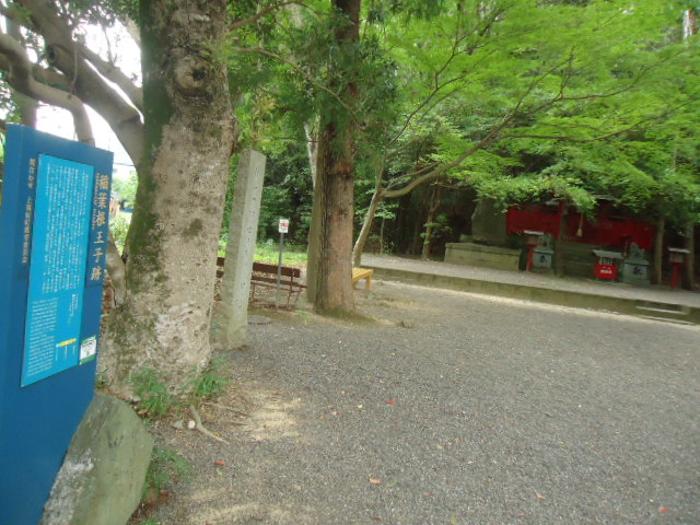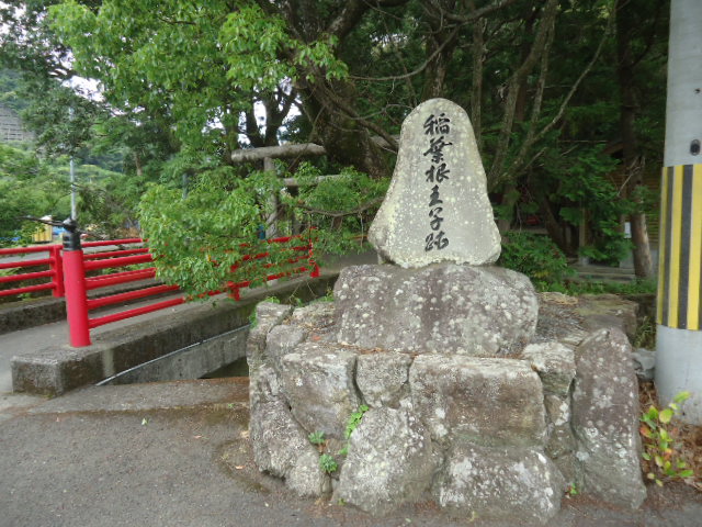 | 14:02 稲葉根王子 藤原宗忠の日記「中右記」の1109年10月22日暮に、「伊那波弥王子社に参り奉納」とあるのが、この王子の初見です。1201年、後鳥羽上皇の熊野参詣に随行した藤原定家は、10月13日に稲葉根王子に 参詣していますが、この王子では、五躰王子に準じて、儀式が諸事華やかであったと日記に書いています。1210年4月28日修明門が参詣した際には、この王子を五躰王子として存続し、足利義満の個室・北野譲が参拝した折には神楽が奉納されています。近世には、「岩田王子」ともいわれ、村の地上神として祀られていました。 〜 説明板から〜 |
