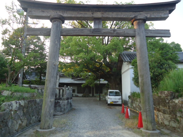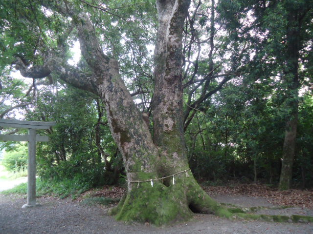| 14:38 田中神社 和歌山県西牟婁郡上富田町岡 その名の通り、水田の少ない熊野では珍しい、田の中にある神社。 この神社は昔、田中神社から6kmほど上流にある岡川八幡神社の上手の倉山という山から大水のときに森全体が流れ着いたのだと伝えられています。 森全体ではなく、御神体か社殿が流れ着いたのだろうという解釈もできるでしょうが、森全体が流されたとしたら、ものすごい大洪水です。 世界的博物学者の南方熊楠により名付けられた「オカフジ」に覆われた小さな森の中に神社が経っています。この森は昭和31年に県の天然記念物の第1号として指定されました。 〜 説明板から〜 |