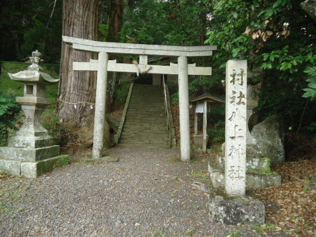 | 14:54 八上王子 建仁元年(1201)の後鳥羽上皇の熊野御幸にお供した藤原定家の日記『後鳥羽院熊野御幸記』の十月十三日の条には「次ミス(三栖)山王子、次ヤカミ王子、次稲葉根王子」と八上王子の名があり、それより92年前の天仁2年(1109)に熊野を詣でた藤原宗忠(むねただ)という貴族の日記『中右記 (ちゅうゆうき)』の十月二十日の条には「田辺の王子に奉幣後、萩生山口で昼食をとり、山を越えて新王子社に奉幣した」というようなことが記されており、 この新王子社が八上王子であることは地理的に見て確実と思われることから、八上王子が天仁2年(1109)ころに設けられた王子であることが推察されます。 八上王子は西行法師(1118〜1190)が歌を詠んだことでも知られ、西行の生涯を描いた『西行物語絵巻』にも、西行が八上王子の社殿の瑞垣に歌を書き付ける場面が描かれています。 「 待ち来つる八上の桜咲きにけり あらくおろすな みすの山風 」 今の八上神社には残念ながら西行が歌心を誘われた桜は残っていませんが、境内には西行のこの歌の碑が2基、建てられています。ひとつは大正5年に建てられたもの。もうひとつが昭和62年に建てられたもの。大正5年のものが読みにくくなったので、その隣に新たに歌碑が建てられたそうです。 三栖山を越え八上王子を経て石田川(いわたがわ)に出るルートは江戸時代には潮見峠越えという別ルートに取って代わられ、八上王子はかつてのにぎわいを失いましたが、それでも土地の人々に産土社として尊崇され、明治時代に神仏分離して神社となりました。 八上王子はその後、明治41年(1908年)に合祀されて廃社となりましたが、氏子住民たちが粘り強く抵抗を続け、7年後の大正4年(1915)に復社を果たすことができました。 〜 説明板から〜 |