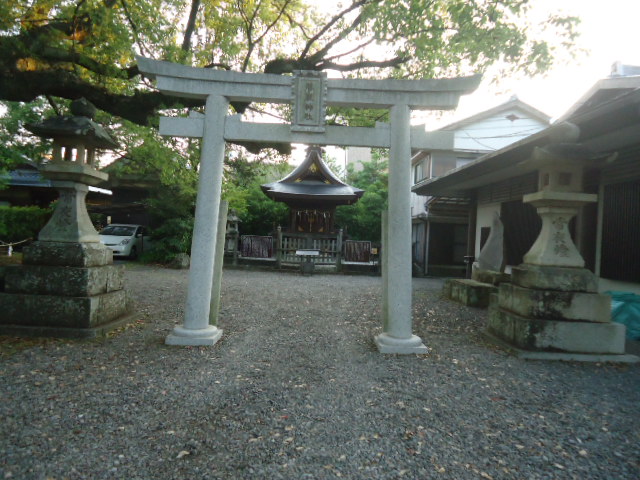| 15:49 三栖王子 三栖の地名は藤原為房の日記、「大御記」に見えます。為房は永保元年(1081)十月に熊野に参詣した際、三栖荘で宿泊しています。王子の名は藤原定家の日記、「熊野道之間愚記」に「ミス山王子」と書かれているのが初見です。承元四年(1210)四月の「修明門院熊野御幸記」でも三栖王子に参拝したことが記されており、 承久二年(1220)年11月に熊野参詣をした藤原頼資の日記にもこの王子の名が見られます。室町時代には、すでに、三栖から塩見坂(潮見峠)越えの道が開かれていましたが、応永三十四年(1427)九月に熊野参詣をした足利義満の側室・北野殿は、旧来の参詣路を経由しています。その後、退転し、江戸時代に再興されて「影見王子」 と呼ばれたようです。明治初年に八坂神社の摂社となり、同四十一年に一倉神社(現、珠簾神社)境内に移転しました。 〜 説明板から〜 |