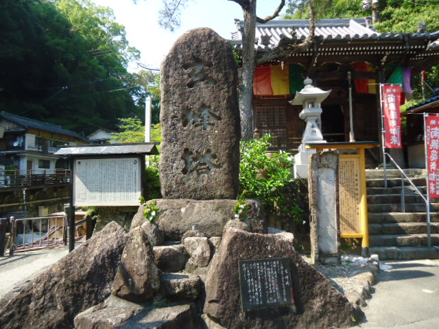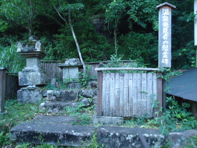 | 15:10 湯の峰温泉 温泉発見者の慰霊塔 湯の峰温泉は4世紀頃、大阿刀足尼(おおあとすくね)によって発見され、その後歴代上皇の熊野御幸によってその名も広く知られるようになった。 〜説明板より 〜 |