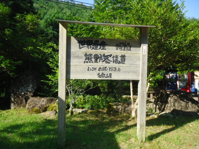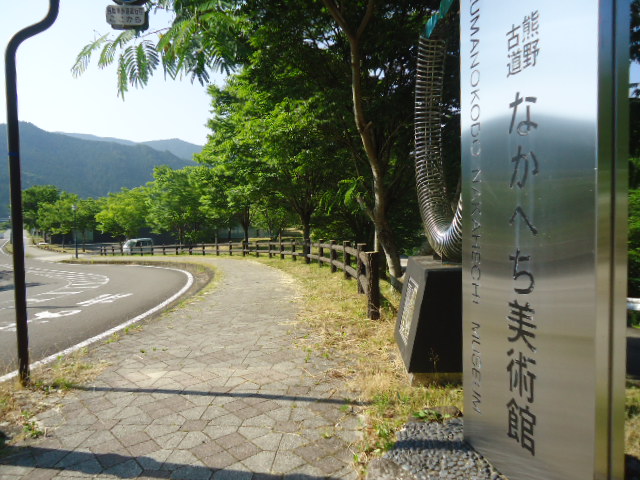 | 10:54 滝尻バス停から右手は熊野古道館、左手の山裾に滝尻王子があります。 左手の山を登っていくと、熊野大社本宮へとつながります。 |