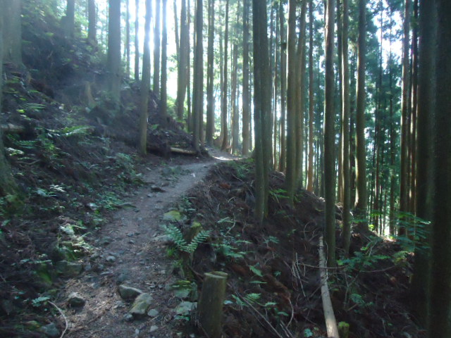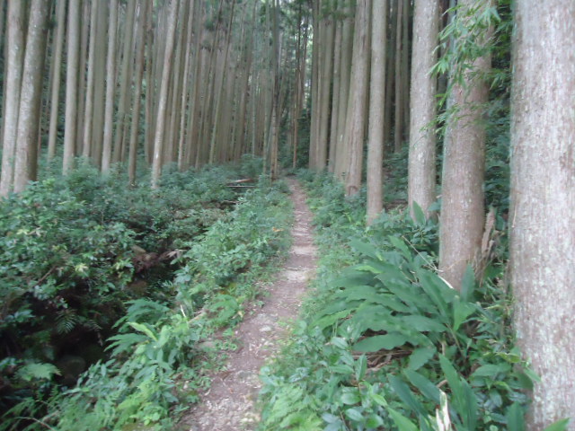 | 7:56 那智駅から国道43号線を歩いていたが、杉林の中をゆく地道に入った。 |