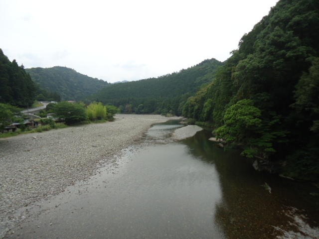 | 7:55 新宮川に沿ってはしる国道168号線を歩いています。 |