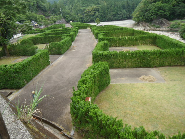| 14:10 小口キャンプ場 生け垣で区画の境界を仕切るキャンプ場。こんなキャンプ地は見たことない。一度、生け垣に囲まれ、芝生の上でテントを張ってみたいもんだ。 |
