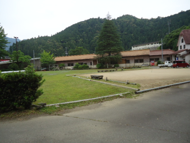 | 14:20 小口自然の家 廃中学校舎を利用した宿。6月末でシーズンから外れていたのか、宿泊客は8人だけでした。でも、その内6人が外人。英語がなかなか通じない。外人同士喋っていて中には入っていけませんでした。 |