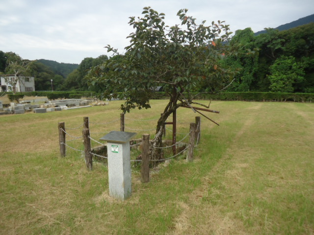 | 8:10 柿の古木 幹の周囲2.9メートル伊勢平柿という甘柿の種類で、源頼朝の死後に植えられたと伝えられている古木である。 |