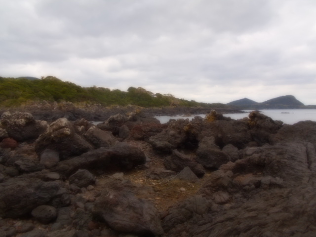 | 鎧瀬溶岩海岸は、鬼岳周辺から流出した溶岩流の上に、約1万年前に海が進出してできました。約7kmにわたって複雑な海岸線を形成しています。