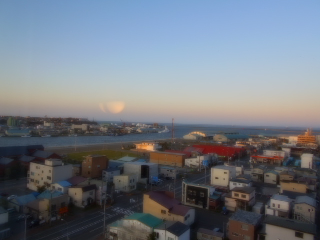 | ホテルから日の出前の釧路市街地を望む。 |