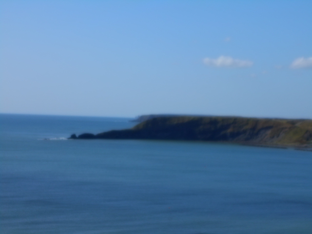 | 平らな台地状の半島が伸びる。海岸段丘でできたことがわかる。 |