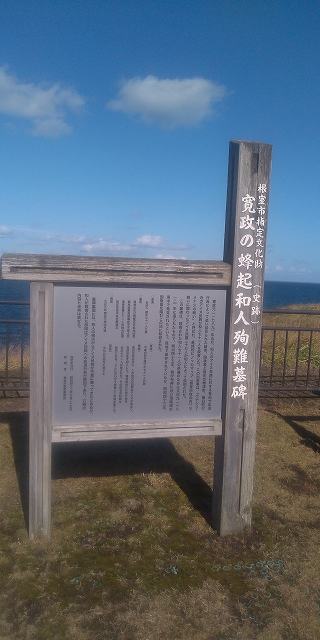 | 寛政の蜂起 和人殉難墓碑 1789年(寛政元)5月はじめ、クナシリ島のアイヌが一斉に蜂起し、松前藩の足軽竹田勘平をはじめ、飛騨屋の現地支配人・通辞(アイヌ語と日本語の通訳)・番人らを次々に殺害しました。さらにチュウルイ(標津町忠類)沖にいた飛騨屋の大通丸を襲い、標津付近のアイヌも加わり、海岸沿いにいた支配人、番人らをも殺害しました。 取り調べの結果、飛騨屋の支配人、番人らの非道(暴力・脅迫・性的暴力・だまし・ツグナイ要求)の実態が明らかになりました。これらは、飛騨屋がアイヌを強制的に働かせるために行われました。また、アイヌの人々は非常に安い賃金(品物)で、自分たちが冬に食べ る食糧を確保する暇もないほど働かされ、餓死するものが出る状態でした。次第にアイヌたちは「このままでは生きていけない」と意識するようになり、飛騨屋の番人らが「アイヌを根絶やしにして、和人を連れて来る」という脅しが、現実味を帯びてきました。さらに、女性に対する性的暴力が続出し、それに対する抗議をしても認めるどころか、さらにひどい暴力を受けるという始末でした。 根室市HPから引用 |