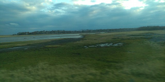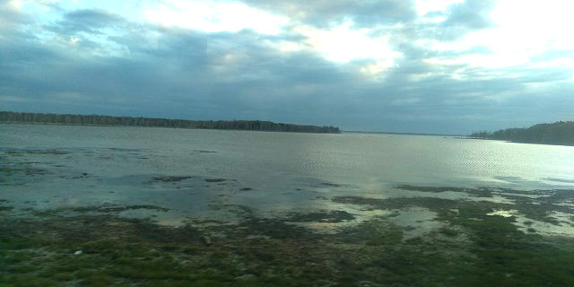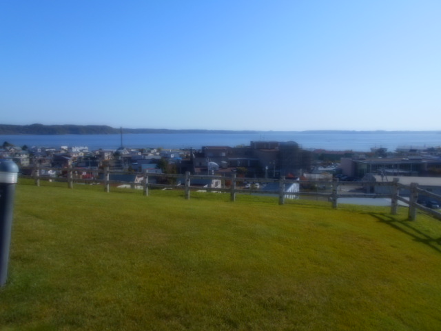 | トイレ休憩で立ち寄った厚岸道立自然公園から対岸の厚岸半島を望む。 |