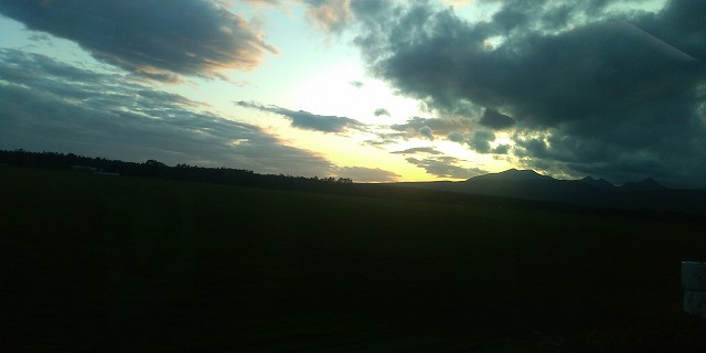 | 斜里岳辺りか? 日の入りが近い。 |