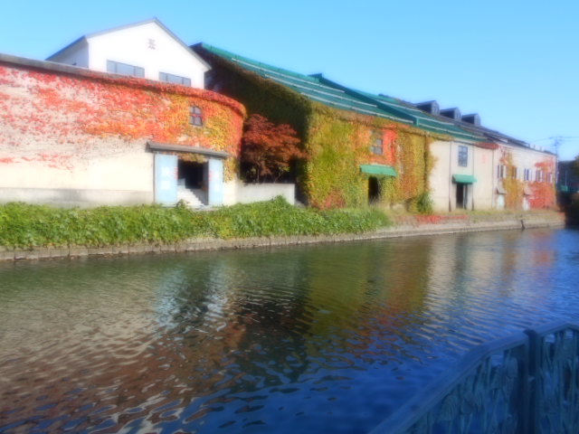 | 運河沿いに並ぶ蔦を絡めた倉庫 |