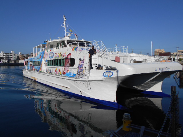 | 明石港と淡路島・岩屋港を結ぶ「淡路ジェノバライン」の「まりん・あわじ」号。 前は「たこフェリー」のマナエで親しまれていたと思うが、いつの間にか、潰れたのか運営が変わってしまっていた。 |
