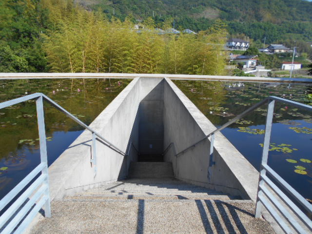 | 本福寺 安藤忠雄設計の水御堂へ降りる階段。時間が早すぎてまだ開く前。 |