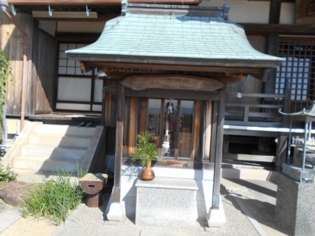 | 由良湊神社と心蓮寺との間に立つ建物。どちらの関連したものかは判らないが、社寺分離令で別れたものであろう両者にとって大きな問題ではない。 |