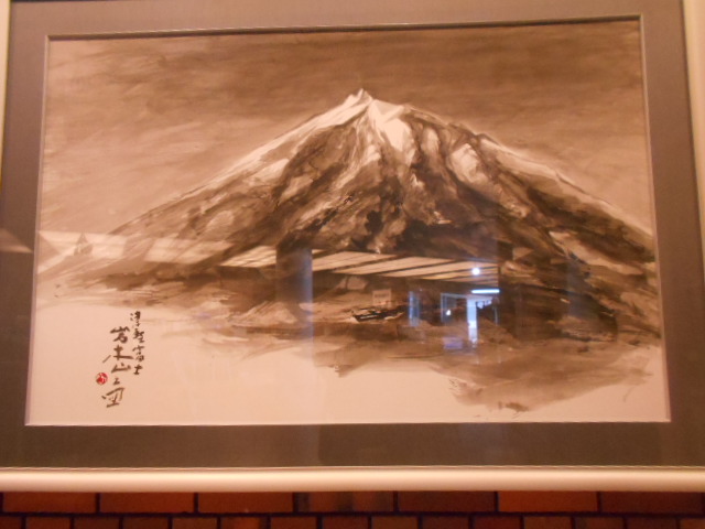 | 山頂が特徴的な岩木山を描いた水墨画 館の1階ホールに掲げられていた。 |