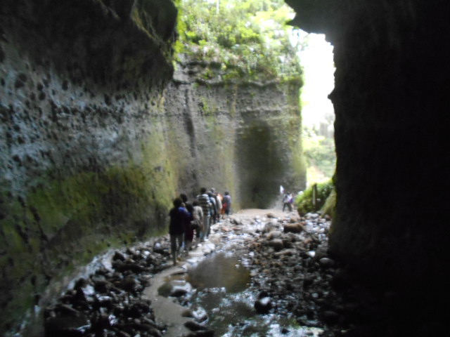 植物学者・牧野富太郎さんが植物採取に何度も訪れた多くの種類のシダが茂る希少な洞窟です。高さ約5m、幅約3m、延長約100mある約310万年〜230万年前(鮮新世から更新世)に堆積した地層が侵食された洞窟です。洞窟の中には、シダ群落があります。40種類以上のシダが自生していて、1箇所にこれほど多いシダが共生しているのはとても希少なため国の天然記念物に指定されています。 |