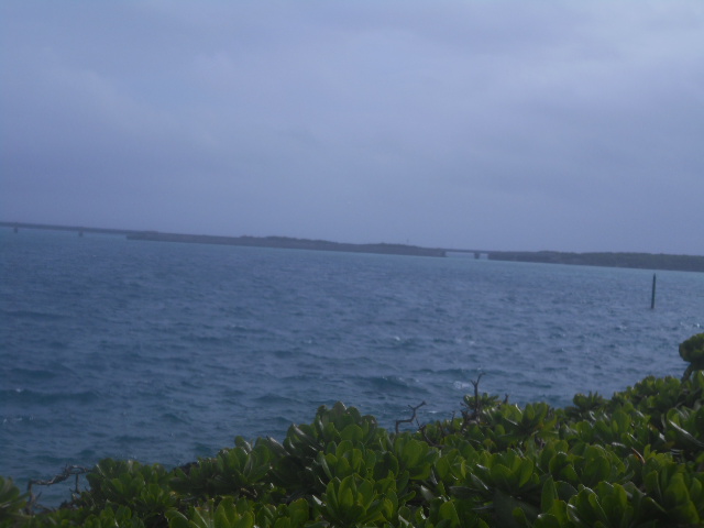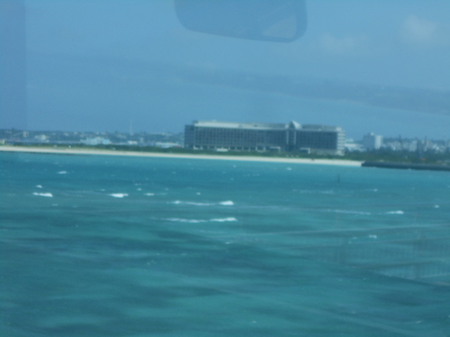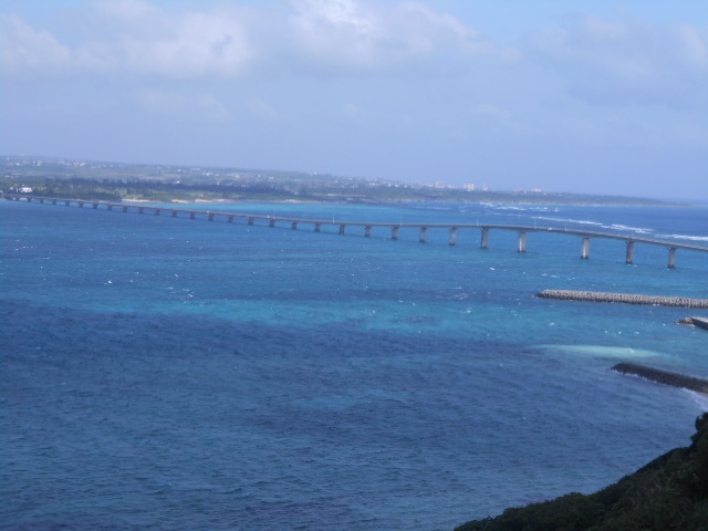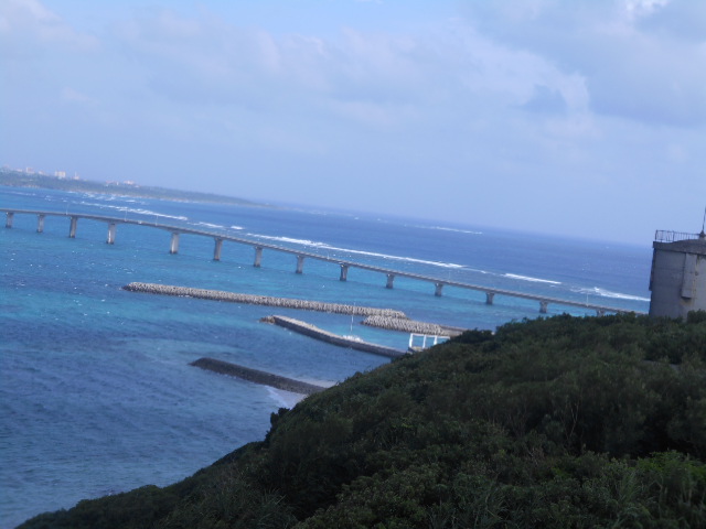 | 竜宮城展望台から対岸の宮古島を望む。( ホテルが見える) |