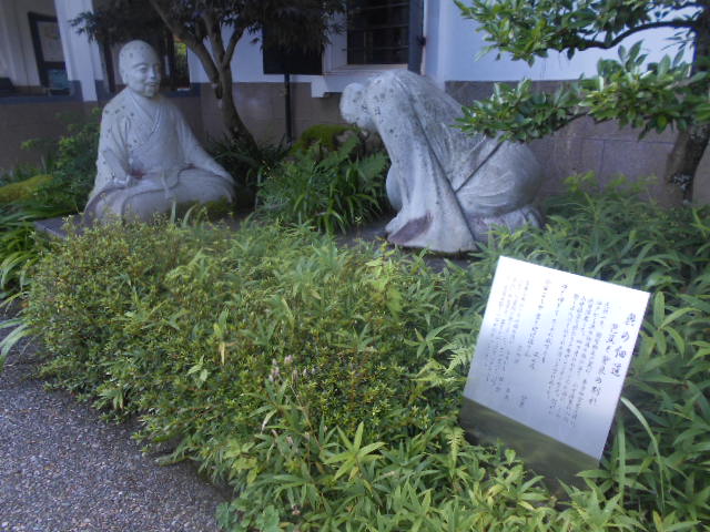 | 芭蕉の館 芭蕉と曽良の別れ 元禄2年、俳聖松尾芭蕉は、弟子の曽良を伴い江戸から奥の細道の旅に出て、山中温泉に入り9日滞在した。4か月にわたる二人旅は、この山中温泉で終わりを告げることとなる。別れに際し二人はそれぞれの思いを句に託した。 ゆきゆきて たふれ伏すとも 萩の原 曽良 今日よりや 書き付け消さん 笠の露 芭蕉 苦楽を共にした二羽の鳥が、今日から一羽一羽になって雲間に迷うようだ。笠に書いた「同行二人」の文字を、落ちる涙で消すことのないようにと、芭蕉の寂しい心が伝わってきます。 |