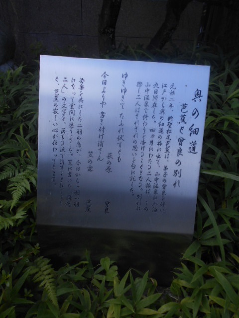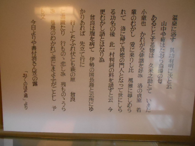 | 句碑 山中や 菊は手折らじ 湯のにほひ 芭蕉 |