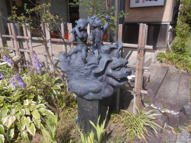 | 温泉街の街角にたたずむオブジェ |