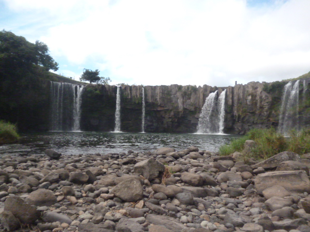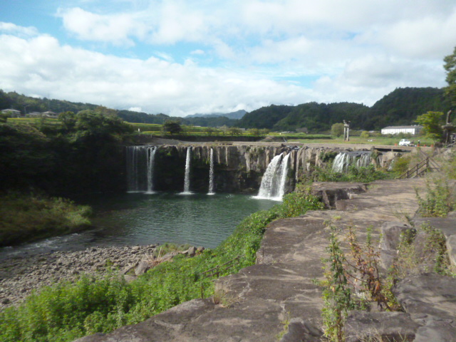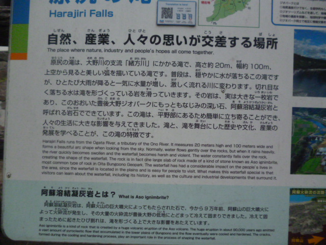 | 原尻の滝 大分県豊後大野市にある「原尻の滝」は幅120メートル、高さ20メートルを誇り、“東洋のナイアガラ”と称される「日本の滝百選」でもある「おおいた豊後大野ジオパーク」認定の大分県百景のひとつです。 平野にあるため気軽に立ち寄ることができ、吊り橋「滝見橋」を渡り滝の周りを一周することもでき、雄大な滝を見下ろすことができます。 |
