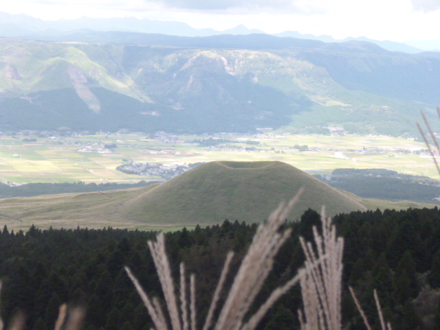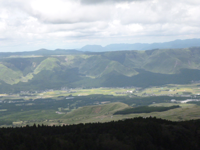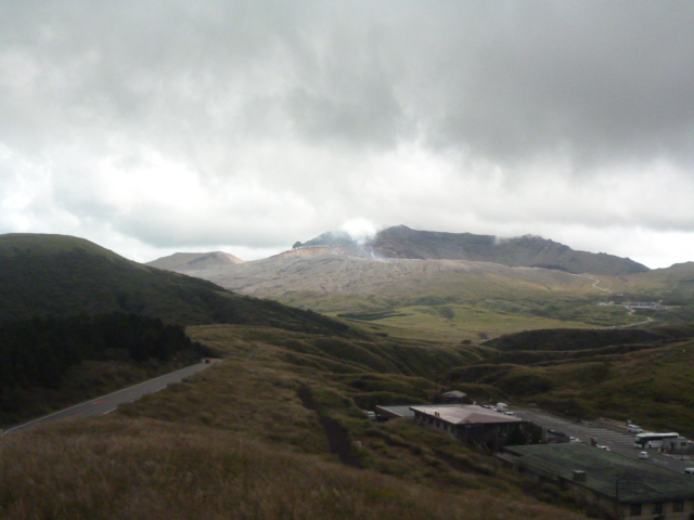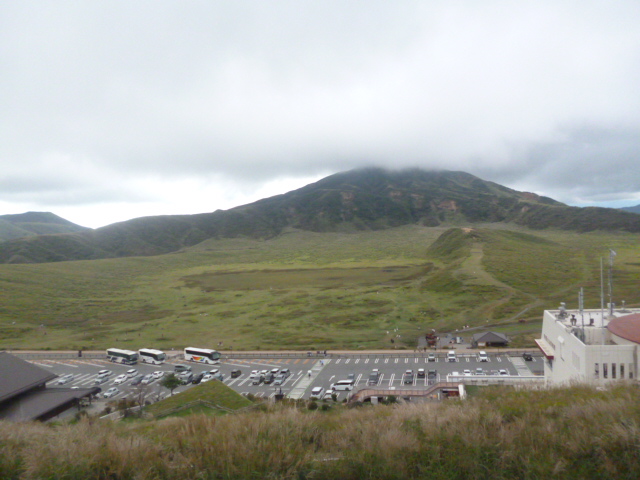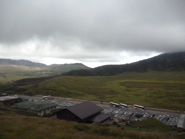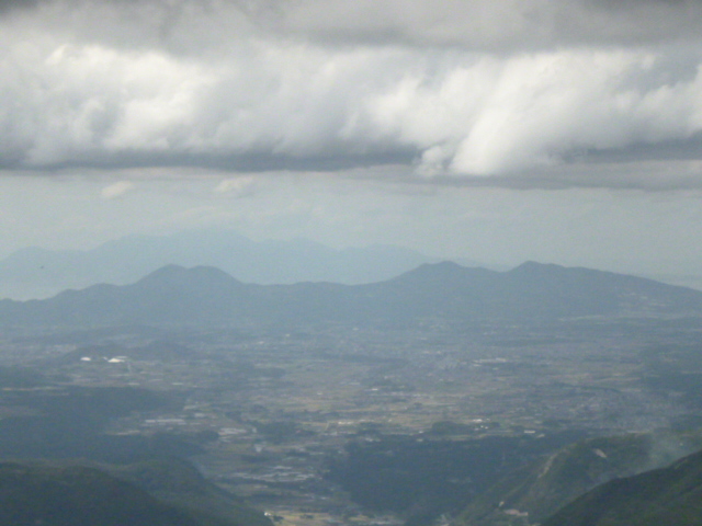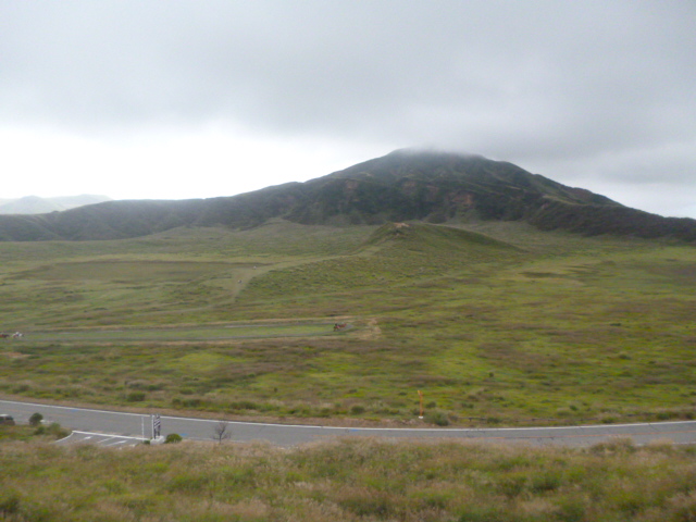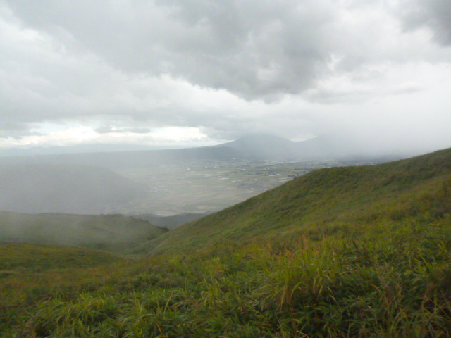 | 雨の中、かすかに見えた阿蘇の山々 |