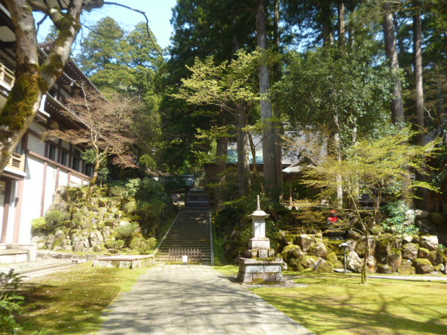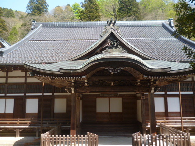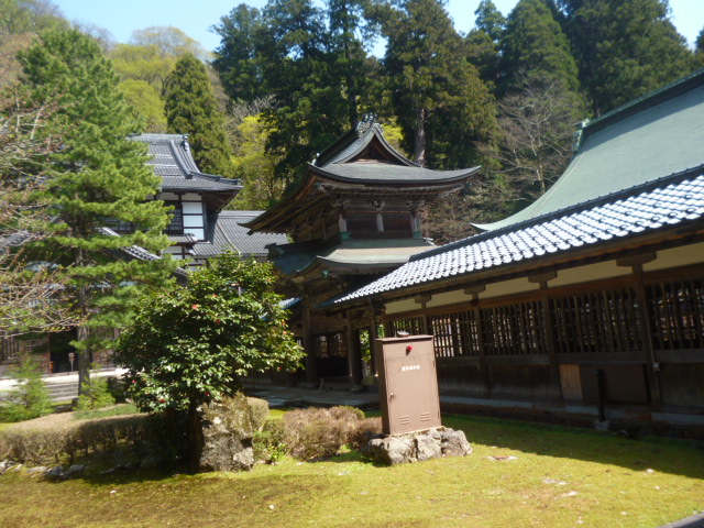 | 永平寺 福井県吉田郡永平寺町にある曹洞宗の仏教寺院。總持寺と並ぶ日本曹洞宗の中心寺院(大本山)である。山号を吉祥山と称し、開山は道元、本尊は釈迦如来・弥勒仏・阿弥陀如来の三世仏である。寺紋は久我山竜胆紋(久我竜胆紋・久我竜胆車紋)。 |