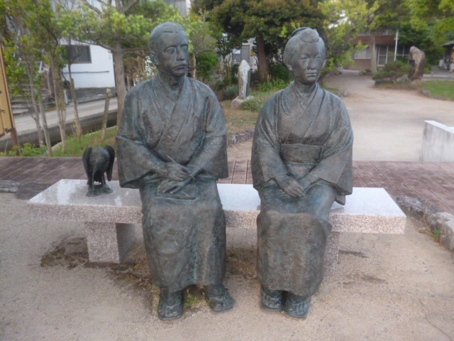 | 小泉八雲夫妻像 宿舎の隣の公園に設置されていた。 |