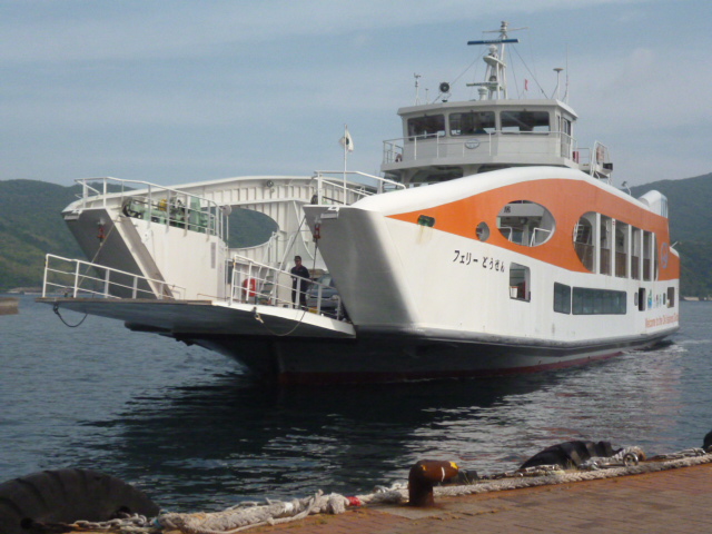 | この舟 「フェリーどうぜん」に乗って別府港(西浦町)に向かいます。 |