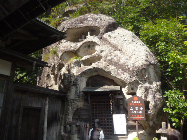| 立石寺 当山は宝珠山立石寺といい通称『山寺』と呼ばれています。天台宗に属し、創建は貞観二年(860年)天台座主第3世慈覚大師円仁によって建立されました。 当時、この地を訪れた慈覚大師は土地の主より砂金千両・麻布三千反をもって周囲十里四方を買い上げ寺領とし、堂塔三百余をもってこの地の布教に勤められました。開山の際には本山延暦寺より伝教大師が灯された不滅の法灯を分けられ、また開祖慈覚大師の霊位に捧げるために香を絶やさず、大師が当山に伝えた四年を一区切りとした不断の写経行を護る寺院となりました。その後鎌倉期に至り、僧坊大いに栄えましたが、室町期には戦火に巻き込まれ衰えた時期もありましたが、江戸期に千四百二十石の朱印地を賜り、堂塔が再建整備されました。元禄二年(1689)には俳聖松尾芭蕉が奥の細道の紀行の際この地を訪れ、「閑さや 岩にしみ入る 蝉の声」の名句を残しました。 現在は約百町歩(33万坪)の境内を持ち、その中に大小30余りの堂塔が残され、三つの不滅(法灯・香・写経行)が今尚護られています。 |