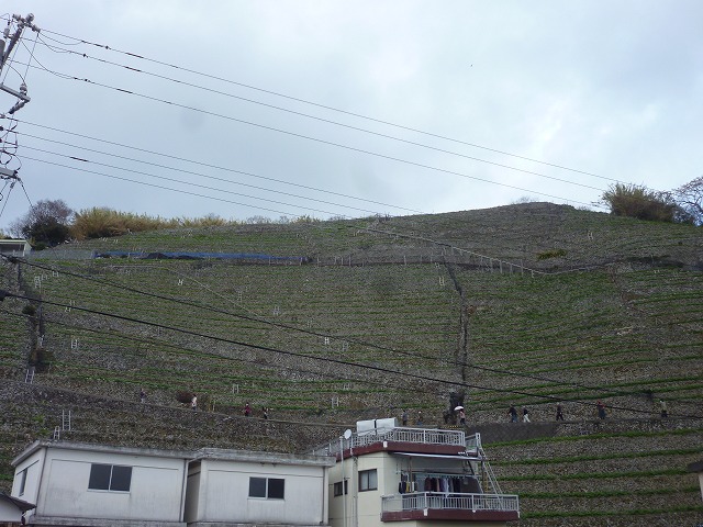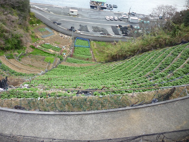 | 段畑を上から見下ろすとジャガイモの緑が美しい |