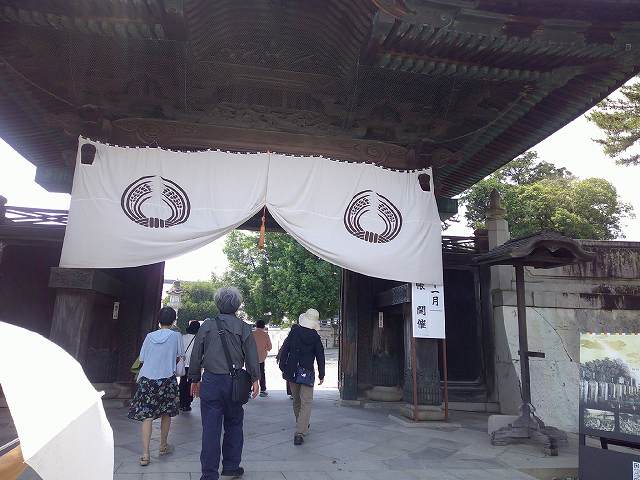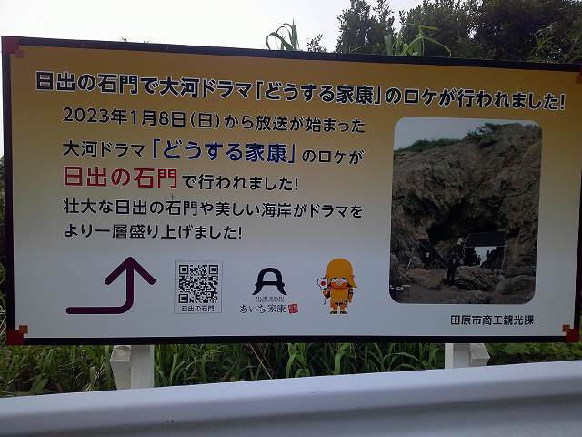 2日目: 宿の朝食前にウォーキングで、「日出の石門」を訪れた。バスに乗り、道の駅田原めっくんはうす、蒲郡オレンジパーク、一畑山薬師寺 岡崎別院、八丁味噌の里の立ち寄り大阪・梅田に。