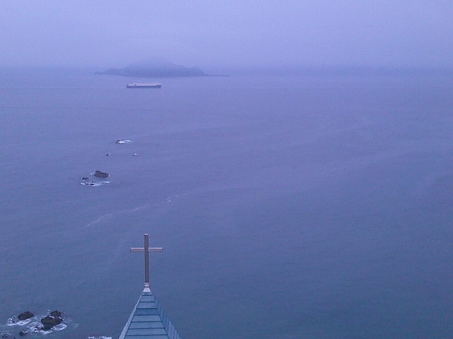 宿の朝食前にウォーキングで、「日出の石門」を訪れた。