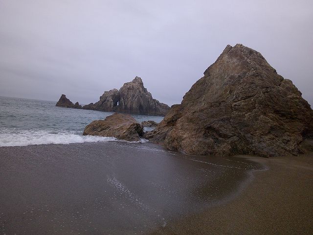 | 日出の石門 ひいのいしもん 「日出石門(ひいのせきもん)」は、気の遠くなるような長い時間をかけて、太平洋の荒波によって真ん中が侵食され洞穴となったもの。沖の石門、岸の石門の2つがあり、いずれも自然の強さと神秘に圧倒されます。その名のとおり、日の出のときに美しいシルエットを見せてくれます。 |