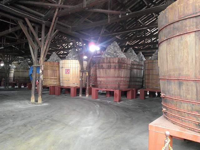 | 八丁味噌の里 カクキューの「八丁味噌」は、大豆と塩のみを原料に大きな木桶の中に仕込み、その上に職人の手で天然の川石をピラミッド状に積んでいき、その状態で二夏二冬(2年以上)じっくり熟成させて作られます。江戸時代から続く老舗味噌メーカー「カクキュー」は、本社屋と史料館が国の登録有形文化財に登録されており、仕込み用の蔵を利用した史料館では、昔ながらの味噌づくりの様子を紹介。八丁味噌と赤出し味噌のお味噌汁を試食して味比べもできます。現在も仕込みに使っている直径6尺もある巨大な木桶が並ぶ味噌蔵は圧巻! |