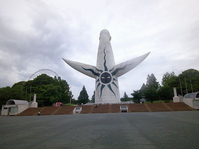 | 太陽の塔 岡本太郎がデザインした。裏面に今は、黒い太陽が描かれていた。 |