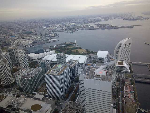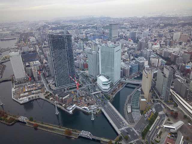 ヨコハマエアーキャビンとミナトミライ高層ビル群 |