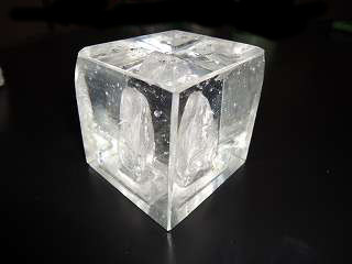| 家をモチーフしたつもりですが、・・・・・ 溶融ガラスの中に閉じ込められた空気が幻想的で面白い形を作りました。 太郎を眠らせ、太郎の屋根に雪ふりつむ。 次郎を眠らせ、次郎の屋根に雪ふりつむ。(三好達治 「雪」より) の詩を思い出しました。 |