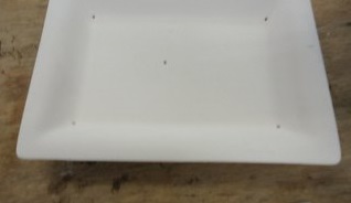 | 2015/11/18 厚さ5mmの板ガラスをこの素焼き皿の上に載せ加熱すると溶融し柔らかくなったガラスはこの皿に沿った形になります。 |