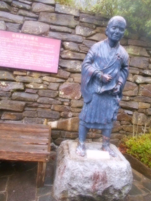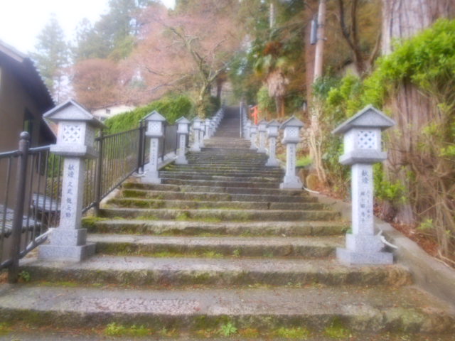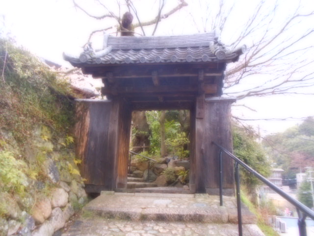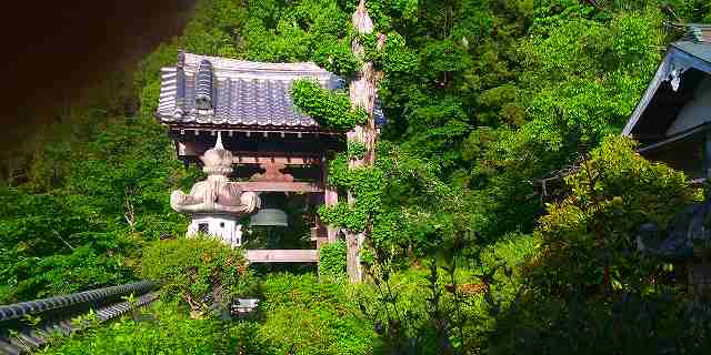 お寺の前の道路沿いの岩壁。 ここに登ってくる途中で見えた烏帽子岩やJR道場駅近くの不動岩などとともに鏑射山を形作る大きな岩の一部が外に顔を出しているのでしょう。
