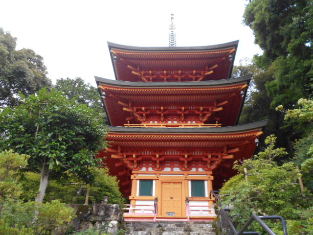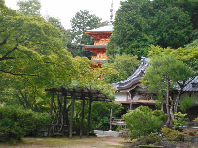 | 緑に包まれた護摩堂と三重塔。紅葉の時期に訪れてみたいものです。