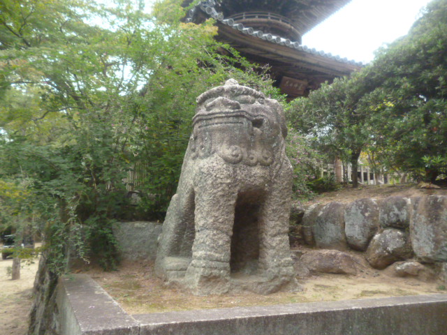 | これだけ立派な寺でしたが山門は在りませんでした。門の代わりの石塔。