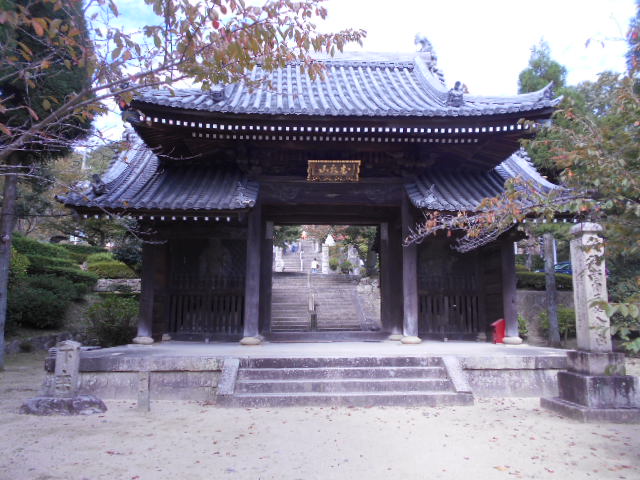 | 仁王門 中央に高屋根四脚門を構え左右に低屋根を段違いにかけた三間一戸八脚門の異形で、仁王門としては珍しい建物である。細部手法は禅宗様のやや濃厚な折衷様式よりなり、中央門と左右脇門との間に少しずつ相違が見られる。棟札によれば、文化元年(1804)に第63世寛眼和尚が建立したものである。ただし、基壇と門礎は先師・蓬眼和尚の築造にかかる。 from HP |