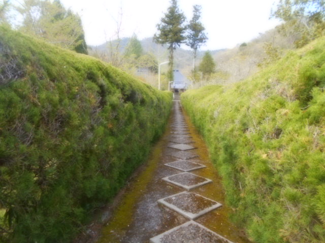 | 山門から続く参道は生け垣に挟まれた長い道。 |